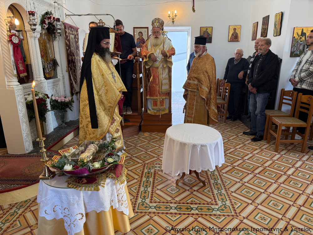 Ο Μητροπολίτης Ιεραπύτνης και Σητείας κ. Κύριλλος χοροστάτησε στην Ακολουθία του Όρθρου, ευλόγησε τους προσφερόμενους άρτους και στη συνέχεια τέλεσε την Αρχιερατική Θεία Λειτουργία, με την παρουσία του αποτμήματος ιερού Λειψάνου του εορταζομένου Αγίου, το οποίο προσκόμισε από την Ιερά Μητρόπολη που φυλάσσεται για να προσκυνήσουν οι πιστοί.
