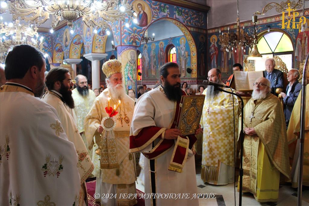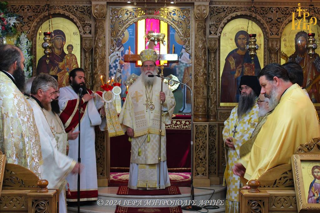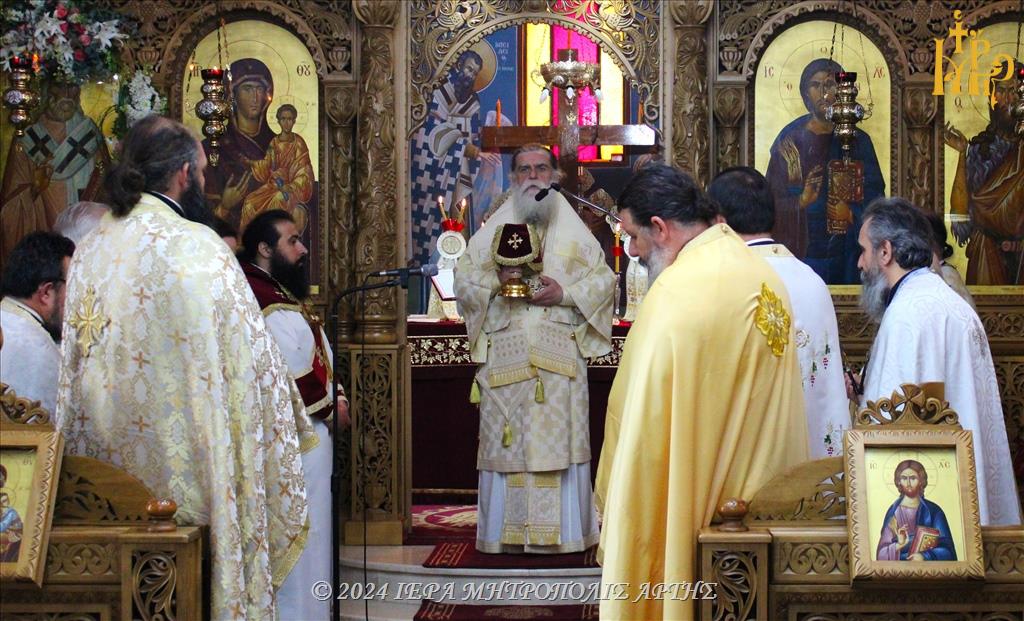 Ι.Μ. ΑΡΤΗΣ – Την Τρίτη 14 Μαΐου 2024, το πρωΐ, στον πανηγυρίζοντα Ενοριακό Ιερό Ναό του Αγίου Ιερομάρτυρος Θεράποντος του θαυματουργού, στους Αγίους Αναργύρους Άρτης ετελέσθη Αρχιερατική Θεία Λειτουργία προεξάρχοντος του Σεβασμιωτάτου Μητροπολίτου Άρτης κ. Καλλινίκου.