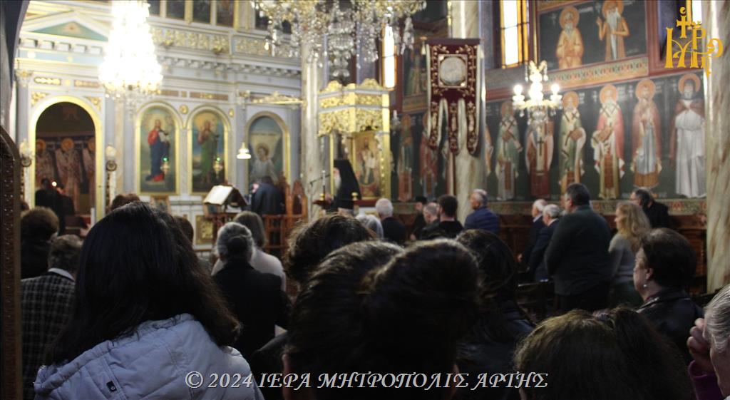 Ι.Μ. ΑΡΤΗΣ – Την Κυριακή 31 Μαρτίου 2024, το απόγευμα, στον ενοριακό Ιερό Ναό του Αγίου Γεωργίου της πόλεως Άρτης, ο Σεβασμιώτατος Μητροπολίτης Άρτης κ. Καλλίνικος προεξήρχε στον Γ΄ Κατανυκτικό Εσπερινό.