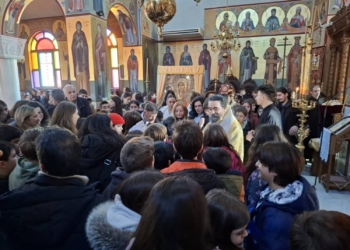 Αφού ακούστηκε το Μακεδονία Ξακουστή από τα μεγάφωνα του Ιερού Ναού στο τέλος απευθύνθηκε στους πιστούς λέγοντας “153 Ναι και 7,5 εκατομμύρια ΌΧΙ” (αναφερόμενος στην συμφωνία των Πρεσπών)