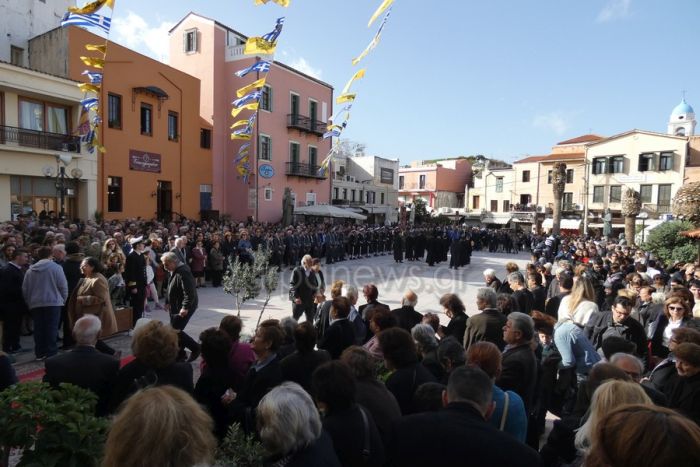 Στη Μητρόπολη των Χανίων από νωρίς το πρωί βρέθηκε πλήθος κόσμου, μεταξύ των οποίων και εκπρόσωποι της πολιτικής, της τοπικής αυτοδιοίκησης, των σωμάτων ασφαλείας και των ενόπλων δυνάμεων.