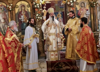 Όσο υπάρχει λειτουργία, όσο υπάρχει Εκκλησία υπάρχει και νόημα υπάρξεως και λόγος υπάρξεως του κόσμου ολόκληρου. Γι’ αυτό κάθε χειροτονία είναι γεγονός εκκλησιαστικό με τεράστια σημασία. Σήμερα λοιπόν με τη χειροτονία του πατρός Μνάσωνος, του εύχομαστε να τον ευλογεί ο Θεός, να τον σκεπάζει, να ομοιάσει με τον Άγιο παππού του, τον πατέρα Σολομώντα. Και στους γονείς του, οι οποίοι προσφέρουν το δεύτερο τους παιδί ήδη στην ιεροσύνη, να τους δώσει ο Θεός εκατονταπλασίονα την ευλογία. Στη σύζυγό του και σε όλους τους οικείους του και σε όλη την Εκκλησία τη Χάρη και το έλεος του Κυρίου μας Ιησού Χριστού”.