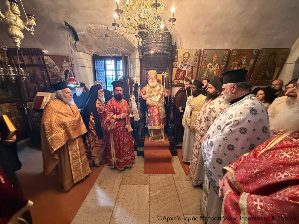 χοροστάτησε κατά την ακολουθία του Όρθρου και στη συνέχεια τέλεσε τη Θεία Λειτουργία, κατά τη διάρκεια της οποίας τέλεσε την εις Διάκονον χειροτονία του κ. Μιχαήλ Λιανουδάκη, πτυχιούχου του Τμήματος Μηχανικών Φυσικών Πόρων και Περιβάλλοντος του Τ.Ε.Ι. Κρήτης και σπουδαστή της Σχολής Μαθητείας Υποψηφίων Κληρικών (Σ.Μ.Υ.Κ.) Κρήτης.