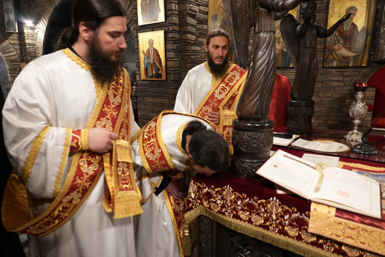 Πριν την χειροτονία, ο Σεβασμιώτατος μίλησε πνευματικά στους πατέρες και τους παρευρισκομένους για το μεγάλο αξίωμα του κληρικού και του διακόνου ανά τους αιώνες.