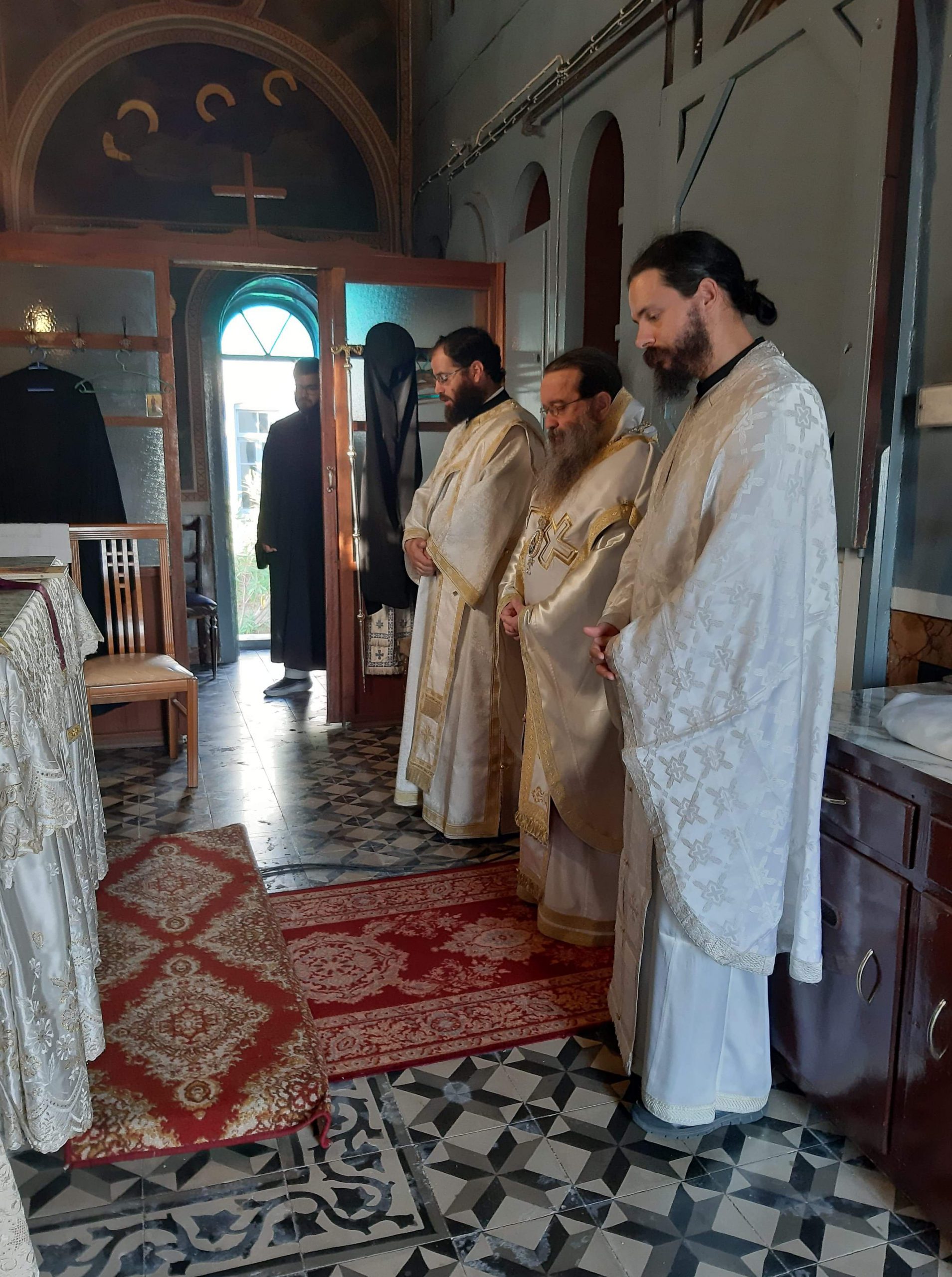 Πρό τής απολύσεως, ο Ποιμενάρχης μας ετέλεσε ιερό τρισάγιο γιά τήν ανάπαυση τής ψυχής τής μακαριστής Καθηγουμένης τής Μονής, Βρυαίνης μοναχής, η οποία είχε τά ονομαστήριά της κατ αυτή τήν ημέρα (συναξάριον 30ης Αυγούστου)