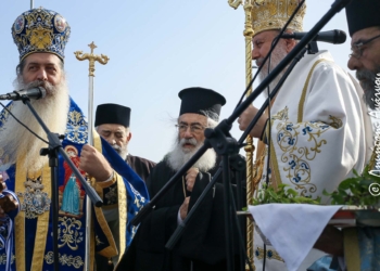 Στη συνέχεια έγινε Αγιασμός στη φιάλη της Μονής και λιτάνευση της αγίας κάρας και της τιμίας χειρός του οσίου εντός και πέριξ της Ιεράς Μονής.