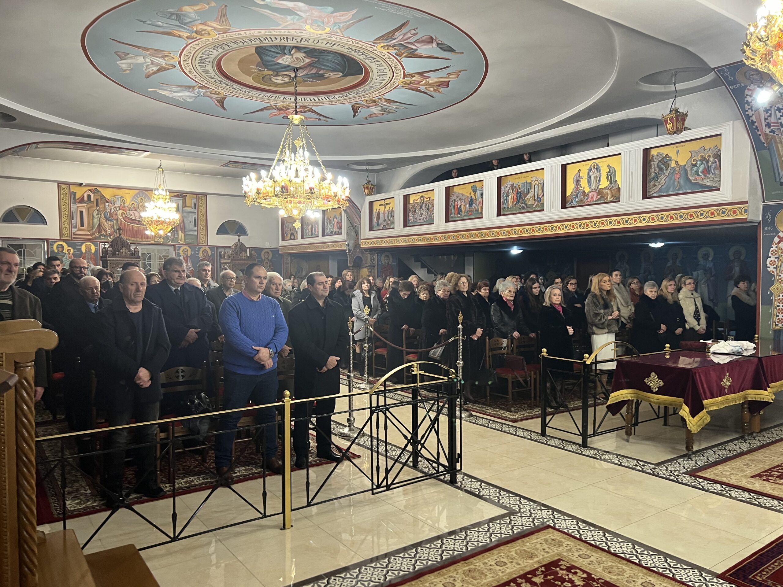 Περισσότεροι από πεντακόσιοι πιστοί κατέκλυσαν τον ιερό ναό, παρακολουθώντας με ευλάβεια τη Θεία Λειτουργία, η οποία αποτελεί κορυφαία στιγμή του εκκλησιαστικού έτους. Η ατμόσφαιρα ήταν κατανυκτική, με τους παρευρισκομένους να συμμετέχουν ενεργά στο μυστήριο, προσευχόμενοι για ειρήνη, υγεία και πνευματική ενίσχυση των οικογενειών τους.