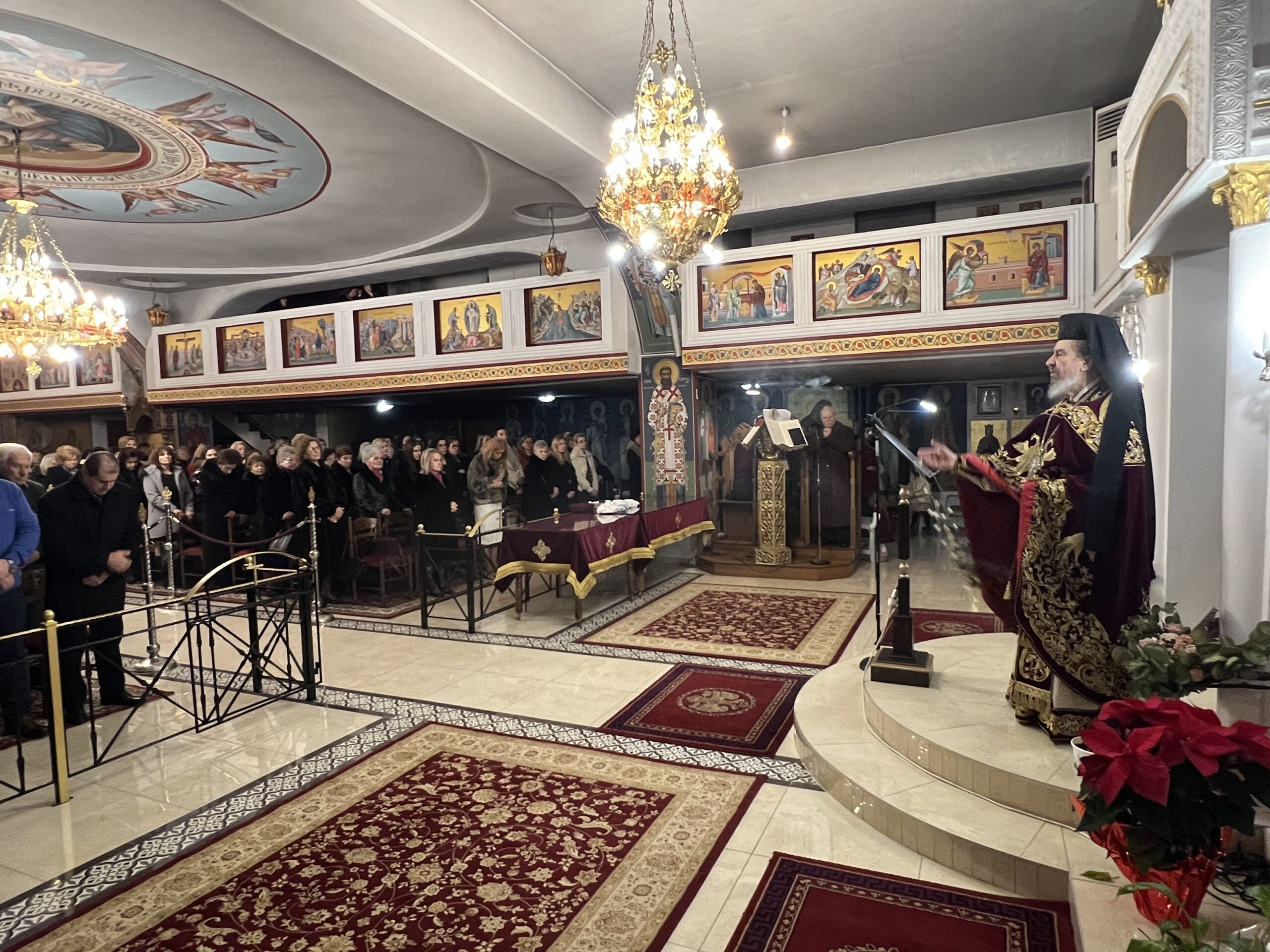 Από τις πρώτες πρωινές ώρες της 25ης Δεκεμβρίου, πλήθος πιστών προσήλθε στον ναό για να συμμετάσχει στη Χριστουγεννιάτικη Θεία Λειτουργία μετά του Όρθρου, τιμώντας τη Γέννηση του Θεανθρώπου μέσα σε κλίμα προσευχής και κατάνυξης, σύμφωνα με την παράδοση της Εκκλησία της Ελλάδος.