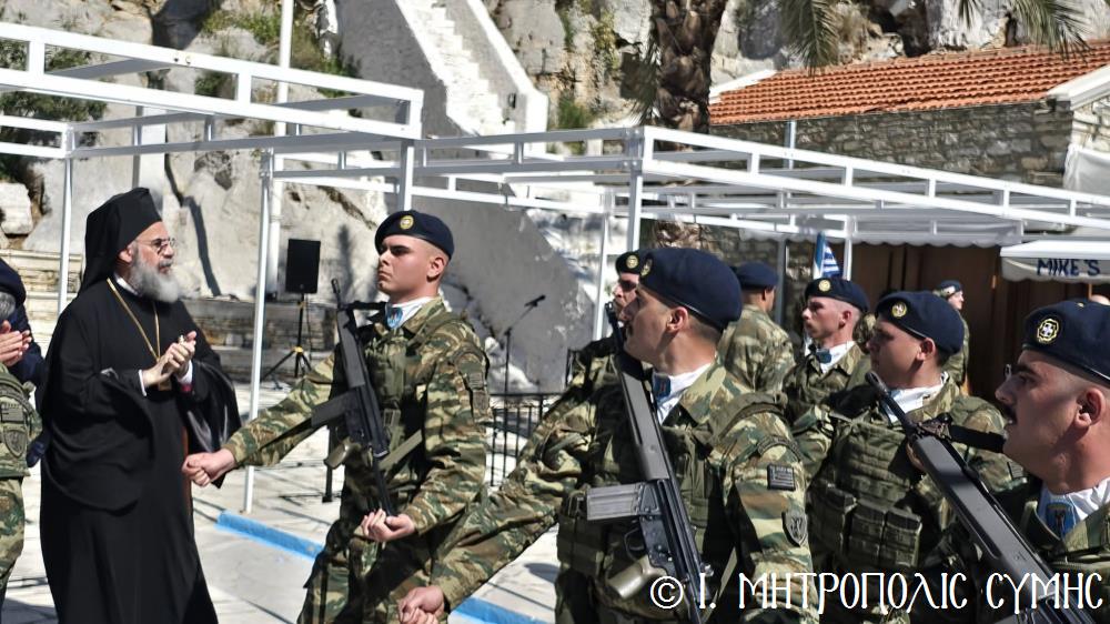 Στο τέλος της παρέλασης συμμετείχαν στρατιωτικά τμήματα της Διοίκησης Άμυνας Νήσου Σύμης καθώς και οι εθνοφύλακες, οι οποίοι αποτελούν σημαντικό κρίκο στην άμυνα των ακριτικών περιοχών της χώρας, όπως επισημαίνεται και από το Γενικό Επιτελείο Στρατού.