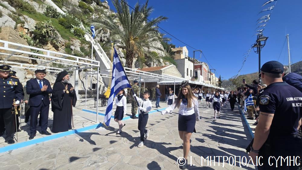 Οι επετειακές εκδηλώσεις ολοκληρώθηκαν με την καθιερωμένη παρέλαση στην κεντρική πλατεία της Σύμης.