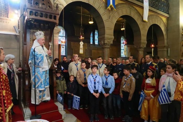 Ο Σεβασμιώτατος στην ομιλία του αναφέρθηκε στην Εθνική Εορτή και στην εις Πρεσβύτερον χειροτονία του λευκορωσικής καταγωγής Διακόνου Anton Gelyasov. Ιδιαιτέρως αναφέρθηκε στο γεγονός ότι σήμερα στην Ιερά Μητρόπολη Γαλλίας διακονούν κληρικοί πολλών εθνικοτήτων, κάτι που εναρμονίζεται με το πνεύμα του Οικουμενικού Πατριαρχείου που προσπερνά εθνικά και γλωσσικά εμπόδια, καταδικάζοντας τον εθνοφυλετισμό.