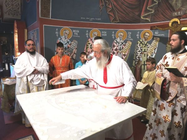 Την κυριώνυμη ημέρα από πολύ πρωί οι ενορίτες είχαν συγκεντρωθεί  για να παρακολουθήσουν από την αρχή την πρωτόγνωρη γι’ αυτούς ακολουθία των εγκαινίων, η οποία άρχισε στις 8.30 και κατά τη διάρκεια της οποίας ο Ιεροκήρυκας Αρχιμ. Άνθιμος Νεραντζής διάβαζε ερμηνευτικό κείμενο της Ιεράς Μητροπόλεως για την κατανόηση εκ μέρους των πιστών όλων των τελουμένων.  Ο Σεβασμιώτατος ενδεδυμένος τον λευκό χιτώνα και συμπαραστατούμενος από Ιερείς και Διακόνους έλουσε την Αγία Τράπεζα, καθηγίασε τα ιερά Αντιμήνσια και με κάθε λεπτομέρεια ετέλεσε τα Εγκαίνια.