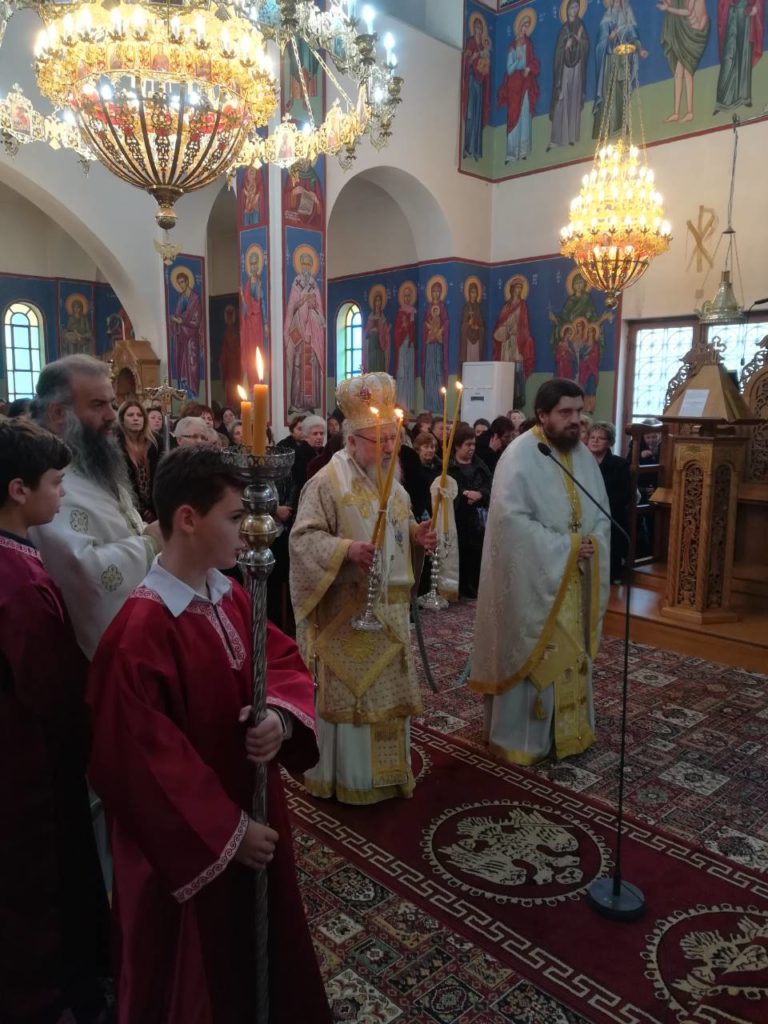 Επίσης ο Σεβασμιώτατος ευχαρίστησε όλους τους κατοίκους της Ενορίας για την φροντίδα τους και την συμπαράστασή τους στην ανέγερση και τον εξωραϊσμό του Ναού, αναφέρθηκε αναλυτικά στα Ιερά Λείψανα τα οποία τοποθετήθηκαν κατά την ακολουθία στο κέντρο της Αγίας Τραπέζης, εξηγώντας ιδιαιτέρως το τι σημαίνει η παρουσία των Ιερών Λειψάνων μέσα στην Αγία Τράπεζα.