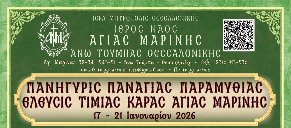 11.00-11.45 π.μ. Ιερά Παράκληση στην Αγία Μαρίνα και ανάγνωση ευχών υπέρ υγείας.