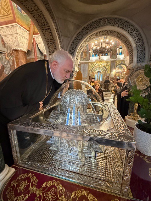 Ο Ελπιδοφόρος προσκύνησε την Αγία Κάρα του Πρωτοκλήτου και τον Σταυρό του Μαρτυρίου, ενθυμούμενος – όπως είπε – τον σύνδεσμο του Αποστόλου Ανδρέα με την Εκκλησία της Κωνσταντινουπόλεως, από την οποία προέρχεται και το ποιμαντορικό του αξίωμα.