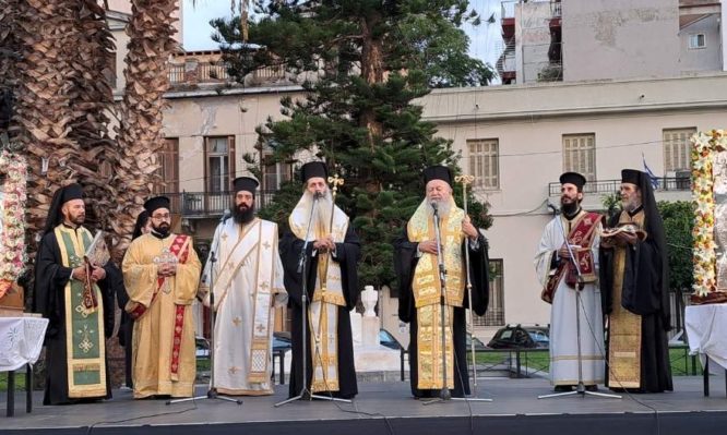 Αμέσως μετά την άφιξη της ιεράς πομπής στο Μητροπολιτικό Ι. Ναό, ο Σεβασμιώτατος Μητροπολίτης Φθιώτιδος κ. Συμεών χοροστάτησε στην τελεσθείσα Ιερά Παράκληση προς τιμήν της Παναγίας, συγχοροστατούντος του Σεβασμιωτάτου Μητροπολίτου Χαλκίδος κ. Χρυσοστόμου.