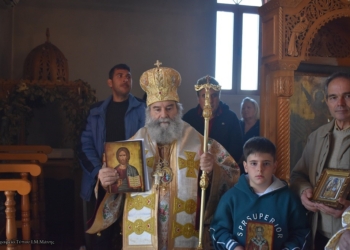 Ι.Μ. Λαρίσης: Με κάθε εκκλησιαστική μεγαλοπρέπεια τελέσθηκαν την Κυριακή 6 Αυγούστου 2017 το απόγευμα, στην νεοσύστατη Ιερά Μονή του Αγίου Νικοδήμου, του Αγιορείτου, στον Πυργετό Λαρίσης τα θυρανοίξια του νέου περικαλλούς καθολικού της Ιεράς Μονής, ο πανηγυρικός Αρχιερατικός Εσπερινός και η Ενθρόνιση του πρώτου Ηγουμένου της Μονής, Αρχιμανδρίτου π.Ειρηναίου Βαϊόπουλου.