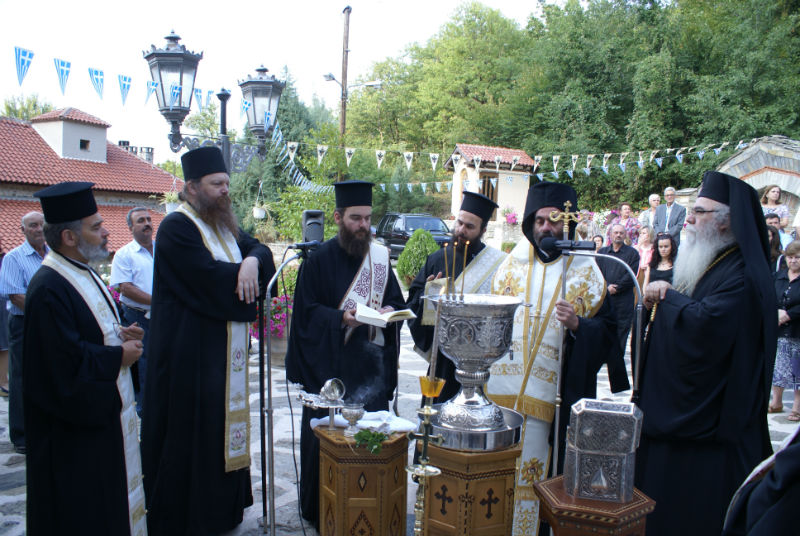 Το απόγευμα της παραμονής στα προπύλαια του Μοναστηριού τελέσθηκε η Ακολουθία του Αγιασμού ενώ ακολούθησε ο Μέγας Πανηγυρικός Αρχιερατικός Εσπερινός, χοροστατούντος του Θεοφιλεστάτου Επισκόπου Αριανζού κ. Βαρθολομαίου και συγχοροστατούντος του Σεβασμιωτάτου Μητροπολίτου Καστορίας κ. Σεραφείμ.