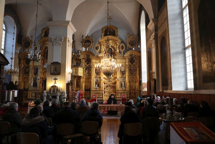Σύμφωνα με την ανακοίνωση της Εκκλησίας της Εσθονίας: “Ο Θεοφιλέστατος προεξήρχε της Θείας Λειτουργίας που τελέστηκε στον Ιερό Ναό της Μεταμορφώσεως Ταλλίνης. Παρόντες ήταν ο Θεοφιλέστατος Επίσκοπος Τάρτου κ. Ηλίας, εκπρόσωπος της τοπικής Ιεράς Συνόδου και του Σεβασμιωτάτου Μητροπολίτου Ταλλίνης και πάσης Εσθονίας κ. Στεφάνου, ο οποίος απουσίαζε στη Νότια Εσθονία, η Γερόντισσα από τη Σκήτη του Τιμίου Προδρόμου, μοναχή Θεοφίλη, η Πρέσβης της Ελλάδος στην Εσθονία κ. Μαρία Καρνούτσου, ο Κοσμήτορας της Θεολογικής Σχολής των Λουθηρανών, κληρικοί και πιστοί από το πλήρωμα της τοπικής Εκκλησίας.