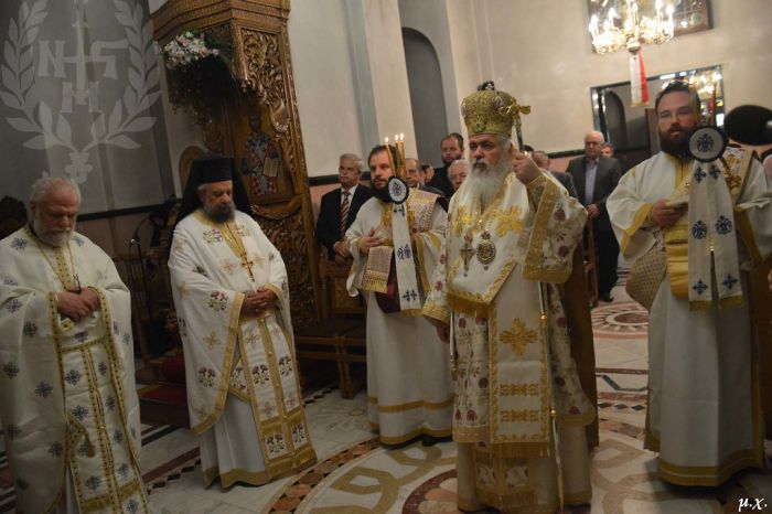 Την προηγούμενη ημέρα, Σάββατο 4 Μαΐου 2019, ο Σεβασμιώτατος κ .Βαρνάβας χοροστάτησε στον Πανηγυρικό Εσπερινό πλαισιούμενος από ιερείς της Ι.Μητροπόλεως.