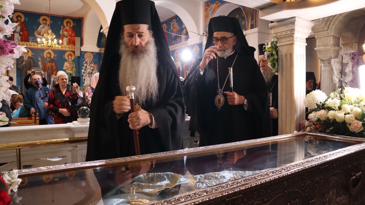 Στη φετινή εορτή συμμετείχαν οι Σεβασμιώτατοι Μητροπολίτες Καρυστίας και Σκύρου κ. ΣΕΡΑΦΕΙΜ, Φιλαδελφείας κ. ΜΕΛΙΤΩΝ, Νιγηρίας κ. ΑΛΕΞΑΝΔΡΟΣ, Κορίνθου κ. ΔΙΟΝΥΣΙΟΣ, Φθιώτιδος κ. ΣΥΜΕΩΝ, ο Πανιερώτατος Μητροπολίτης Φαναρίου κ. ΑΓΑΘΑΓΓΕΛΟΣ-Γενικός Διευθυντής της Αποστολικής Διακονίας της Εκκλησίας της Ελλάδος και ο Θεοφιλέστατος Επίσκοπος Ωρεών-Αρχιγραμματεύς της Ι. Συνόδου της Εκκλησίας της Ελλάδος και ο Σεβασμιώτατος Ποιμενάρχης μας, Μητροπολίτης Χαλκίδος, Ιστιαίας και Βορείων Σποράδων κ. ΧΡΥΣΟΣΤΟΜΟΣ.