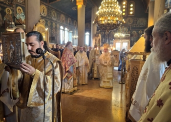 στη Δυτική Μάνη και συγκεκριμένα στον εκεί Ι. Ναό του Ευαγγελισμού της Θεοτόκου, όπου τέλεσε την Θ. Λειτουργία συμπαραστατούμενος από τον νέο εφημέριο π. Γεώργιο Κουπούζο και τον αρχιδιάκονο π. Χριστόδουλο Κρουστάλη.