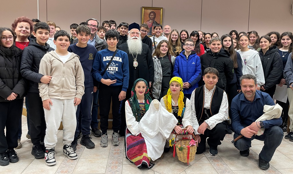 Οι μαθητές έψαλαν τα παραδοσιακά κάλαντα του Λαζάρου, ενώ ο Σεβασμιώτατος τους προσέφερε ευλογίες και αναμνηστικά.