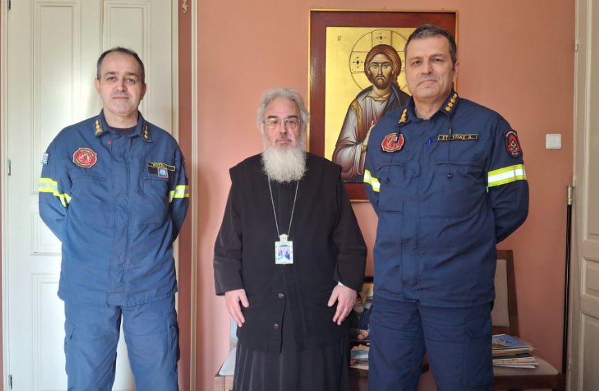 Διοικητής της Διοίκησης Πυροσβεστικών Υπηρεσιών Νομού Πρέβεζας, Πύραρχος κ. Δανιήλ Στούπας συνοδευόμενος από τον Διοικητή της Πυροσβεστικής Υπηρεσίας Πρέβεζας κ. Γεώργιο Γκούμα, στα Γραφεία της Μητροπόλεως.