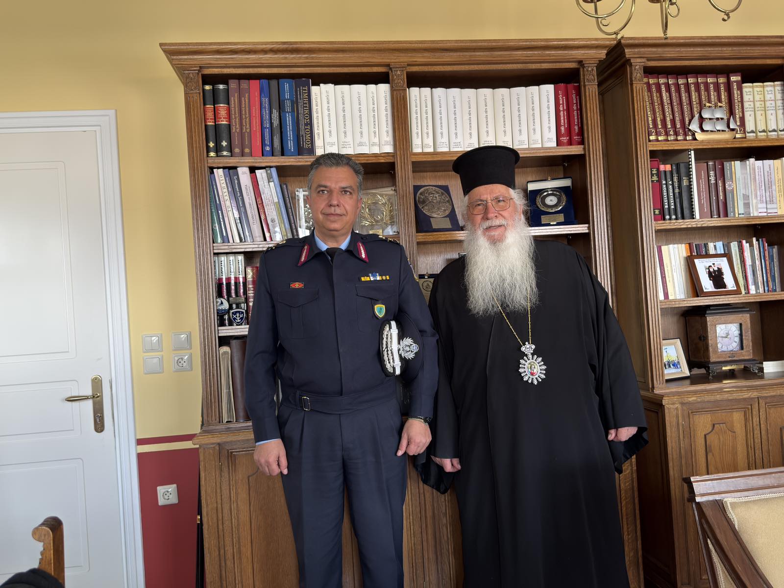 Στη συνέχεια ο Μητροπολίτης δέχτηκε στα γραφεία της Μητροπόλεως στη Λιβαδειά τον νέο Αστυνομικό Διευθυντή Βοιωτίας Ταξίαρχο κ. Γεώργιο Κακούρη, ο οποίος υπέβαλε τα σέβη του στον Μητροπολίτη με την ευκαιρία της ανάληψης των νέων καθηκόντων του. Κατά τη διάρκεια της συνάντησης υπήρξε ανταλλαγή απόψεων και επιβεβαίωση για αγαστή συνεργασία. Ο Μητροπολίτης ευχήθηκε στον Αστυνομικό Διευθυντή υγεία και καλή δύναμη στα νέα του καθήκοντα.