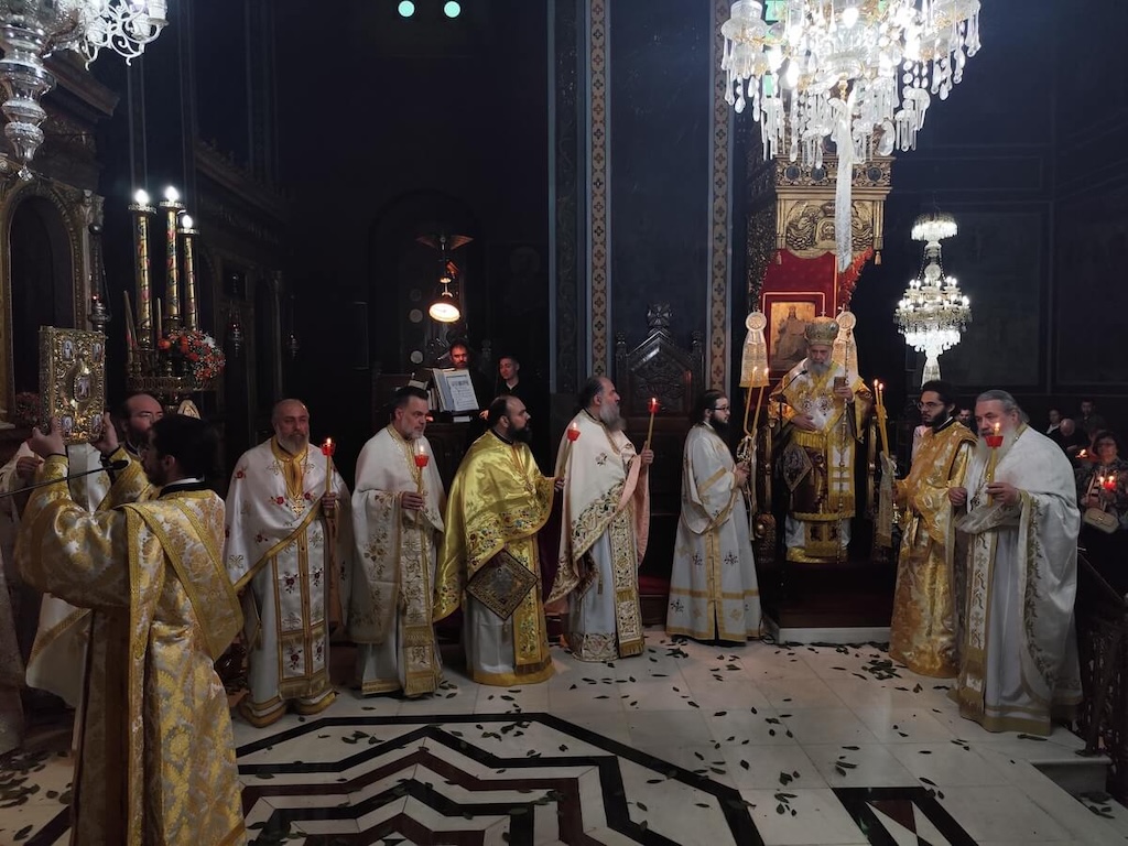 Πλήθος πιστών προσήλθε στον Ιερό Ναό, προκειμένου να συμμετάσχει στη χαρμόσυνη αυτή ακολουθία της Εκκλησίας μας, η οποία σηματοδοτεί την παγκόσμια διάδοση του μηνύματος της Αναστάσεως και της θείας αγάπης προς όλους τους ανθρώπους, χωρίς διακρίσεις.