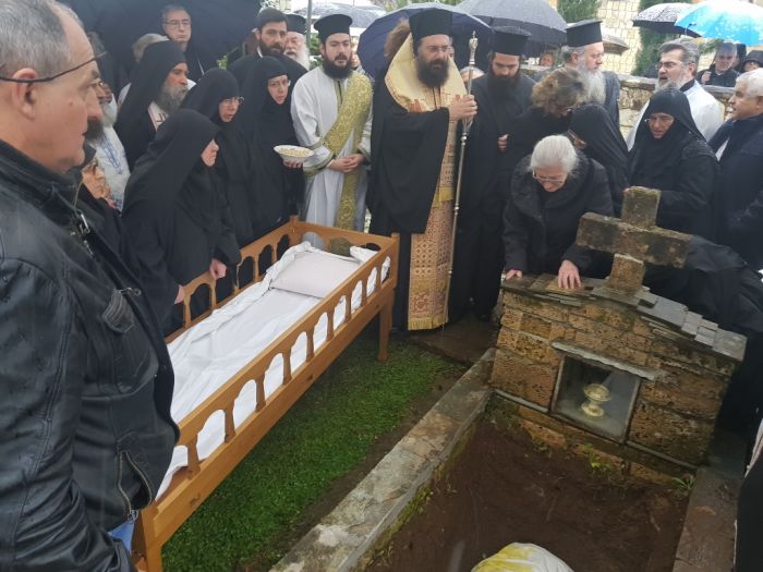 Η ταφή της μακαριστής Γερόντισσας Συγκλητικής Μοναχής έγινε στο κοιμητήριο της Μονής”.
