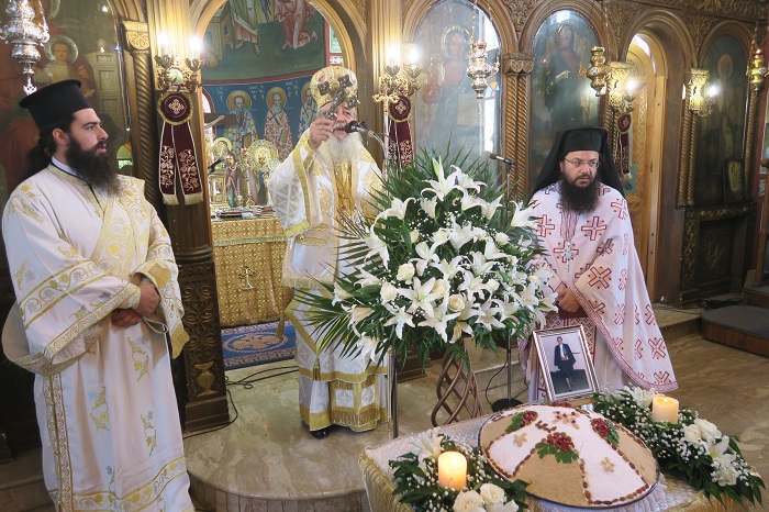Μετά το πέρας της Αρχιερατικής Θείας Λειτουργίας ο Ποιμενάρχης μας ετέλεσε το τεσσαρακονθήμερο μνημόσυνο της αειμνήστου Ευαγγελίας Ρίζου, Πρεσβυτέρας του Εφημερίου της Ενορίας π. Βασιλείου, δια την οποία ευχήθηκε ο Κύριος να της χαρίσει τον Παράδεισο και την αιώνιο ζωή και στον π. Βασίλειο τα παιδιά και τα εγγόνια της να δίδει δύναμη και παραμυθία εις το πένθος τους.