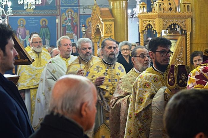 Ο Ποιμενάρχης μας ευχαρίστησε τον π. Δημήτριο για το καλωσόρισμα και τον συνεχάρη για την άριστη προετοιμασία και διεξαγωγή της Πανηγύρεως. Ο Σεβασμιώτατος ανέπεμψε δέηση προς τον Μεγαλοδύναμο Θεό, υπέρ ταχείας αναρρώσεως και Θείας βοηθείας στον π. Δημήτριο, προτρέποντας τους Ιερείς και τους πιστούς ενορίτες, να προσεύχονται με εντατικούς ρυθμούς για τον π. Δημήτριο, ώστε να ξεπεράσει την δοκιμασία του και να επιστρέψει και πάλι υγιής στα καθήκοντά του, πλάι στους ανθρώπους που τον αγάπησαν και τους αγάπησε και πλάι στην οικογένειά του.