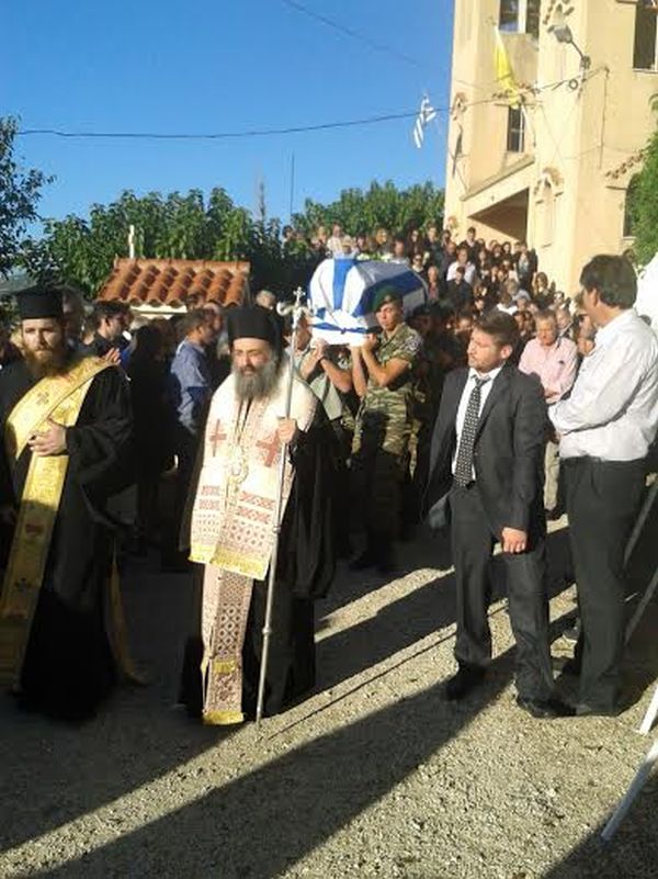 Και κατέληξε ο Σεβασμιώτατος: “Παιδί μου καθώς κρατάς αυτή την ώρα την εικόνα της Αναστάσεως και είσαι τυλιγμένος με την Ελληνική Σημαία αισθάνομαι βαθειά την ανάγκη να σε ευχαριστήσω και να σε επαινέσω για ό,τι ήσουν όλα αυτά τα χρόνια που έζησες σε αυτήν εδώ την γη, έστω και ας είναι λίγα, μόνο 19. Ήσουν ένα γνήσιο παιδί της Αγίας μας Εκκλησίας. Ένα γνήσιο Ελληνόπουλο. Σε μακαρίζω γιατί φεύγεις κρατώντας αυτές τις δυο μεγάλες αγάπες. Τον Χριστό και την Ελλάδα. Όσο ζούσες επάνω στην γη ήσουν η χαρά και το καμάρι όλων μας και ιδιαίτερα των γονιών σου και των αδελφών σου. Τώρα παιδί μου σε παρακαλώ, από τον ουρανό που βρίσκεσαι, να είσαι η παρηγοριά τους. Καλή Ανάσταση πολυαγαπημένο μας παιδί”.