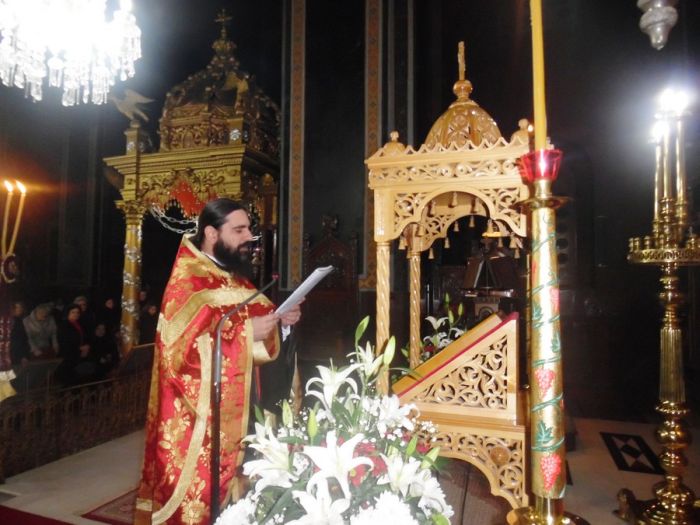 Στην ομιλία του ο Σεβασμιώτατος ανεφέρθη στην ακολουθία της Τριθέκτης, ακολουθία του Βυζαντινού Κοσμικού Τυπικού, που ψαλόταν στον Ναό της του Θεού Σοφίας στην Κωνσταντινούπολη. Φθάνοντας να εορτάσουμε το Μυστήριο της σαρκώσεως του Υιού και Λόγου του Θεού, του δευτέρου προσώπου της Αγίας Τριάδος, η Εκκλησία μέσα από τις Ακολουθίες της και τα Μυστήριά της μας προετοιμάζει κατάλληλα. Μας προετοιμάζει να ξαναγεννηθεί και φέτος μέσα στην καρδιά μας ο Κύριος της Δόξης, να γίνει αυτή φάτνη, που θα τον υποδεχθεί.