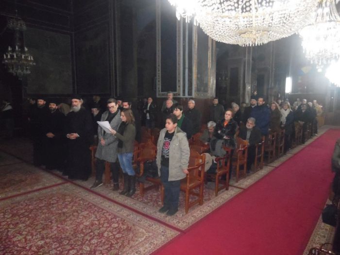 Στην ακολουθία έψαλλε η χορωδία της Σχολής Βυζαντινής Μουσικής της Ιεράς Μητροπόλεως. Χοράρχης αυτής ήταν ο κ. Ιωάννης Παπαχρόνης, Διευθυντής της Σχολής.