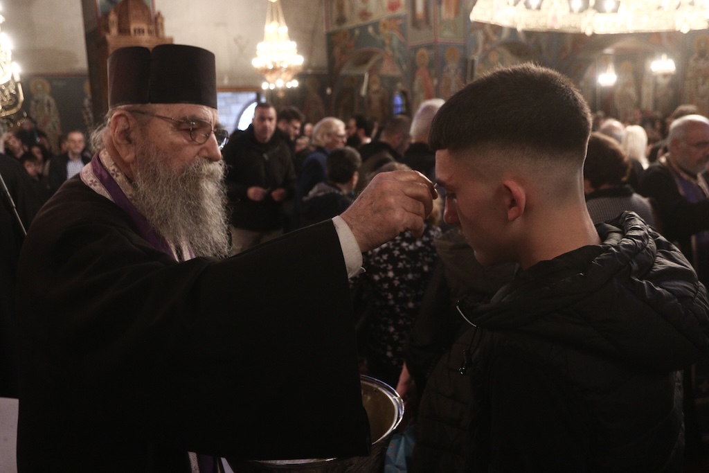 Συγκινητική υπήρξε από νωρίς το απόγευμα η προσέλευση πλήθους ενοριτών κάθε ηλικίας, καθώς οι πιστοί προσήλθαν για να λάβουν την ευλογία και να χριστούν με το άγιο έλαιο προετοιμαζόμενοι και δι’ αυτού του τρόπου για τα Άχραντα Πάθη και την Ανάσταση του Κυρίου.