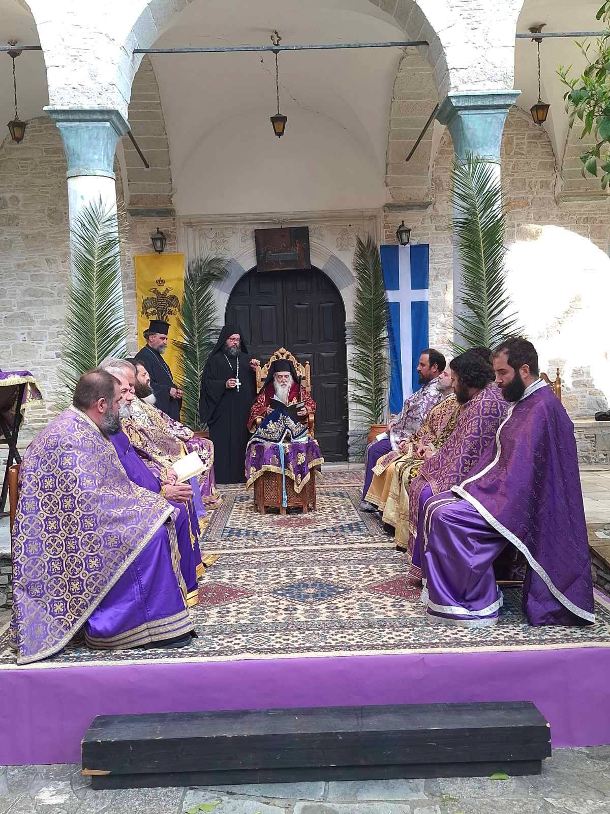 Της ιεράς Ακολουθίας προεξήρχε ο Σεβασμιώτατος Μητροπολίτης Σάμου και Ικαρίας κ.κ. Ευσέβιος, πλαισιούμενος από τους Πατέρες της Ιεράς Μονής και τους κληρικούς της Ιεράς Μητροπόλεώς μας.