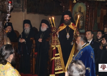 Οπως αναφέρει ανακοίνωση της Μητρόπολης: “Το πρωί της Κυριακής τελέσθηκε Δισαρχιερατική θ. Λειτουργία, προεξάρχοντος του Σεβασμιωτάτου Μητροπολίτου μας κ. Διονυσίου, συνιερουργούντος του Θεοφιλεστάτου Επισκόπου Κεγχρεών κ. Αγαπίου, τους οποίους πλαισίωσαν ο Καθηγούμενος της Ι. Μεγίστης Μονής Βατοπαιδίου Πανοσ. Αρχιμ. π. Εφραίμ, πατέρες της Ιεράς Συνοδείας του και Κληρικοί της Ι. Μητροπόλεώς μας.