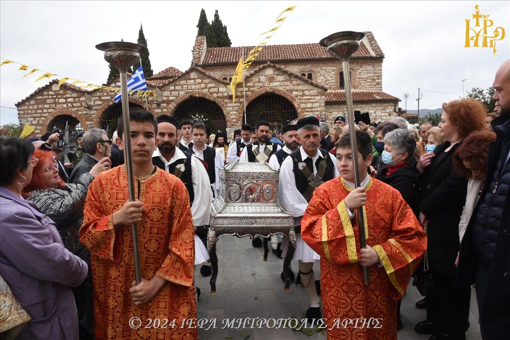 Ακολούθησε η καθιερωμένη λιτανεία της Εικόνος και των Λειψάνων της Αγίας Θεοδώρας.