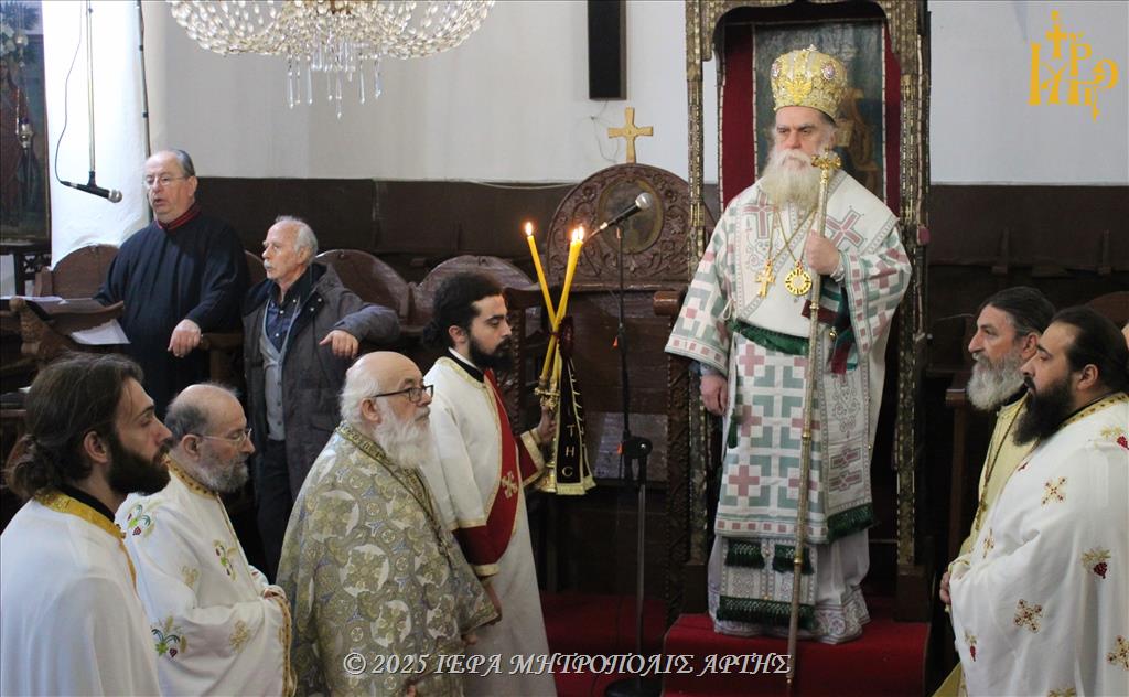 Της Θείας Λειτουργίας προεξήρχε ο Μητροπολίτης Άρτης κ. Καλλίνικος, με τη συμμετοχή Κληρικών και πιστών, που προσήλθαν για να τιμήσουν τον Άγιο.