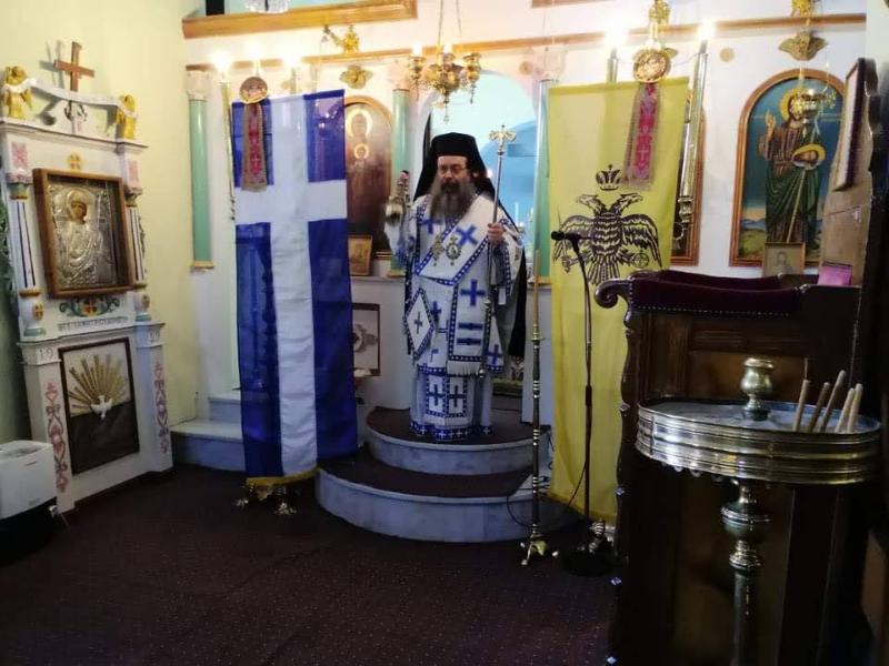 Ο Ιερός Ναός ήτο σημαιοστολισμένος διά Βυζαντινών και Ελληνικών λαβάρων, σημείον της αδιαπτώτου ιστορικής συνεχείας του Ελληνισμού και της συζεύξεως του με την αλήθειαν και την αγάπην της Χριστιανικής Διδασκαλίας.
