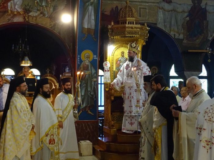 Στην ομιλία του ο Σεβασμιώτατος αναφέρθηκε στo Aποστολικό Ανάγνωσμα της ημέρας (Γαλ. γ’ 23 – δ’ 5) και στο θαυμαστό βίο της Αγίας Μαρίνης, η οποία με το μαρτύριό της ευαρέστησε το Θεό και έλαβε το άφθαρτο στεφάνι της αιώνιας δόξας.
