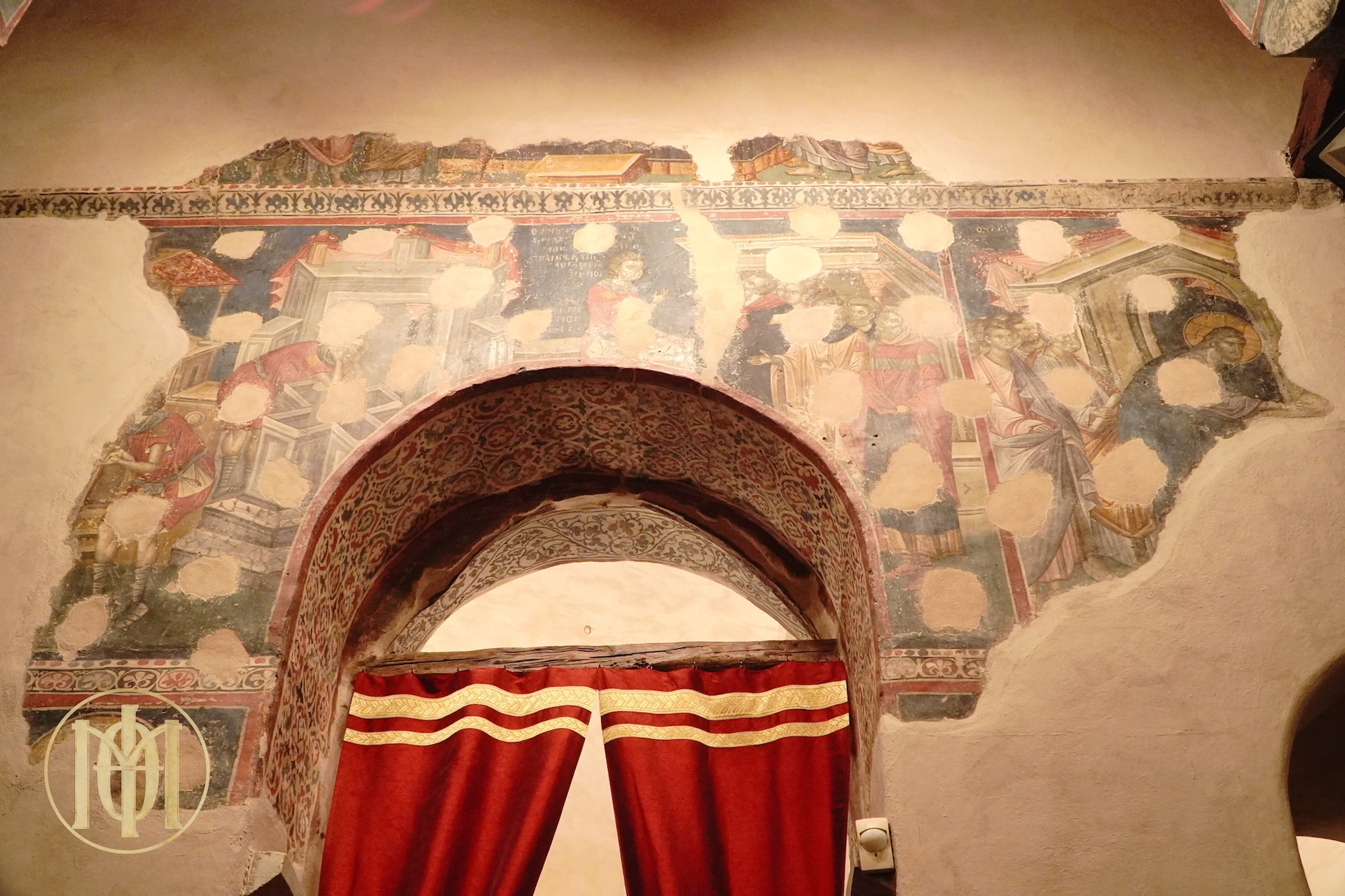 Στο εσωτερικό του ναού σώζονται σημαντικές τοιχογραφίες του 14ου αιώνα, οι οποίες ακολουθούν το πνεύμα της Παλαιολόγειας Αναγέννησης. Παρά τις φθορές, οι αγιογραφίες φανερώνουν εκλεπτυσμένη τεχνική και αποπνέουν την πνευματικότητα της εποχής.
