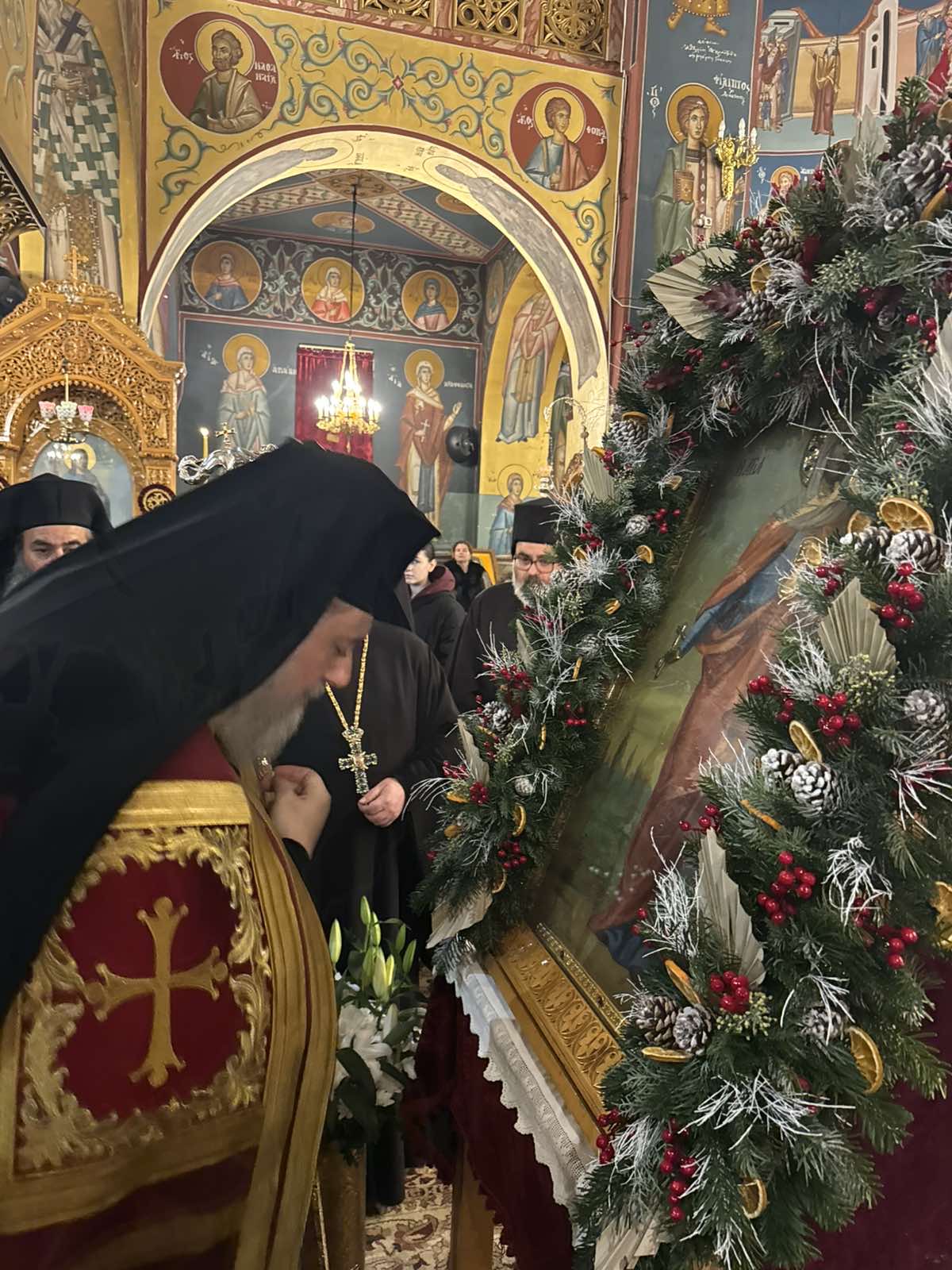 Την παραμονή της εορτής, Κυριακή 21 Δεκεμβρίου 2025, τελέσθηκε ο Μέγας Πανηγυρικός Πολυαρχιερατικός Εσπερινός, χοροστατούντος του Επισκόπου Ταλαντίου κ. Θεολόγου και συγχοροστατούντων των Μητροπολιτών Ανέων κ. Μακαρίου και του Μητροπολίτη Ν. Ιωνίας κ. Γαβριήλ, με τη συμμετοχή πλειάδας κληρικών και τη συμμετοχή πλήθους πιστών.