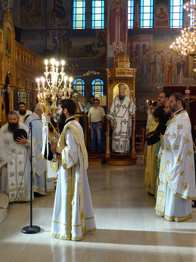 Την παραμονή της εορτής, Κυριακή 5 Αυγούστου 2018, τελέσθηκε ο Μέγας Πανηγυρικός Δισαρχιερατικός Εσπερινός, χοροστατούντος του Σεβασμιωτάτου Μητροπολίτου πρ. Νέας Ιωνίας και Φιλαδελφείας κ. Κωνσταντίνου και συγχοροστατούντος του οικείου Ποιμενάρχου Σεβασμιωτάτου Μητροπολίτου κ. Γαβριήλ, ο οποίος και κήρυξε το θείο λόγο.