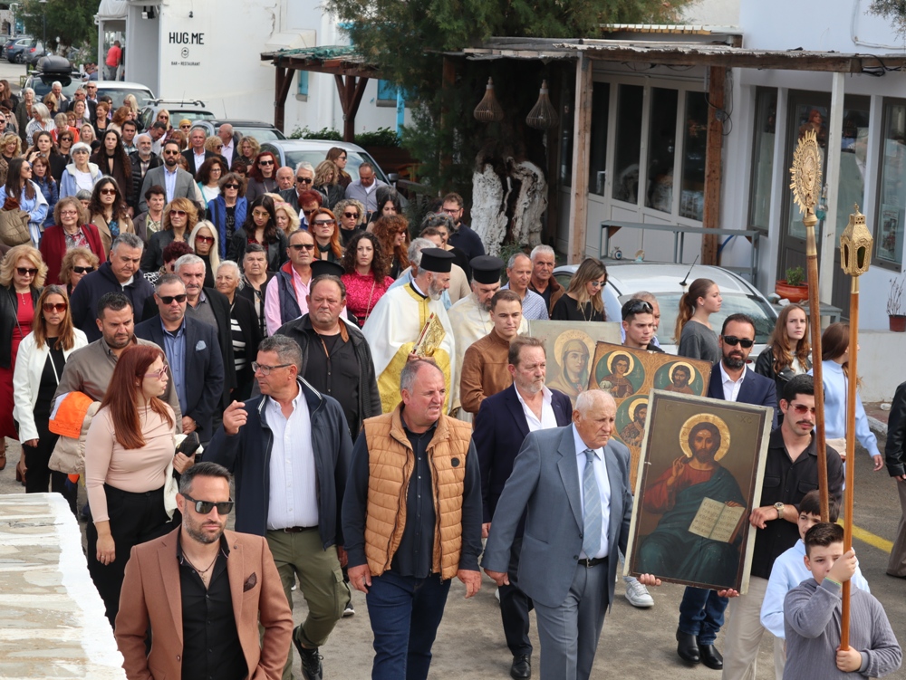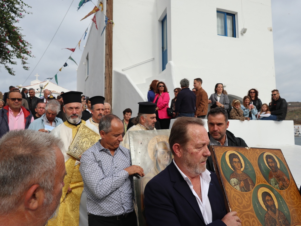 Ακολούθησε λιτανεία της ιεράς Εικόνος των Αγίων Ακινδύνων, Ακινδύνου, Πηγασίου, Ελπιδοφόρου, Ανεμποδίστου και Αφθονίου, την οποία πλαισίωσε η Φιλαρμονική του Δήμου Πετρούπολης, την οποία προσκάλεσαν ο Δήμος Κύθνου και η Επιτροπή του Ναού, και τα μέλη της οποίας ο κ. Δωρόθεος Β’ εγκαρδίως ευχαρίστησε και συνεχάρη.