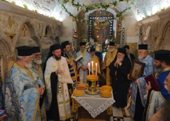 Συγκεκριμένα το απόγευμα της Δευτέρας 29 Ιανουαρίου, στον Ιερό Ναό Αγίας Τριάδος Κατερίνης και συγκεκριμένα στο Παρεκκλήσιο Αγ. Κυπριανού και Ιουστίνης, τελέστηκε Μέγας Πανηγυρικός Εσπερινός