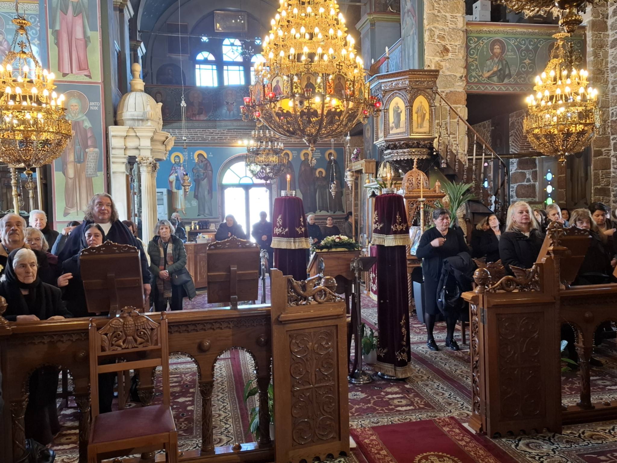 με τη συμμετοχή των Οικονόμων Χαραλάμπους Παπαδόπουλου, εφημέριο ιερού ναού Εισοδίων της Θεοτόκου Φύλλων, Πέτρου Βλάχου εφημέριο ιερού ναού Αγίου Τρύφωνος Νέας Λαμψάκου, και των Πρεσβυτέρων Δημητρίου Παλικηκαρίου εφημέριο ιερού ναού Ευαγγελισμού της Θεοτόκου Μύτικα, Ιωάννου Κάββαλου εφημέριο Μητροπολιτικού παρεκκλησίου Αγίας Βαρβάρας Χαλκίδος.