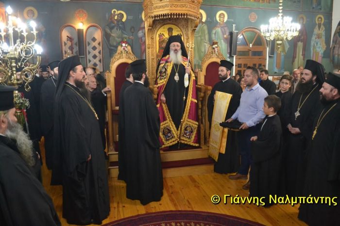 Το βράδυ της Τετάρτης τελέσθηκε βραδυνή Θεία Λειτουργία στον Ναό, ενώ το πρωί της Πέμπτης τελέσθηκε Πανηγυρική Θεία Λειτουργία προεξάρχοντος των ιερέων του Πρωτοσυγκέλλου της Μητροπόλεως αρχιμ. Ειρηναίου Λαφτσή, καθώς ο Μητροπολίτης μας ιερούργησε στον επίσης πανηγυρίζοντα Ιερό Ναό Αγίου Νεκταρίου Τυχερού”.